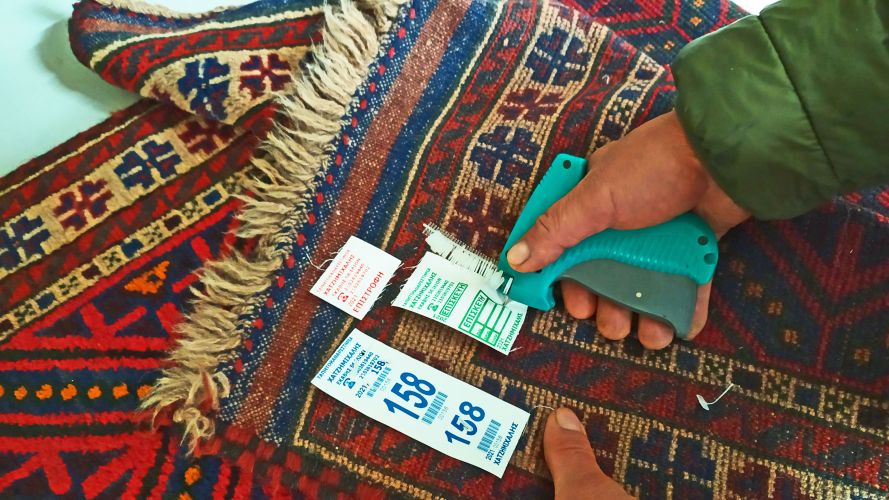 3) Μαρκάρισμα για αποφυγή πιθανών λαθών. Όλα πλέον έχουν ηλεκτρονική υποστήριξη. Με αυτόν τον τρόπο μπορούμε και παρακολουθούμε όλα τα στάδια επεξεργασίας των χαλιών σας από την παραλαβή έως και την παράδοση.